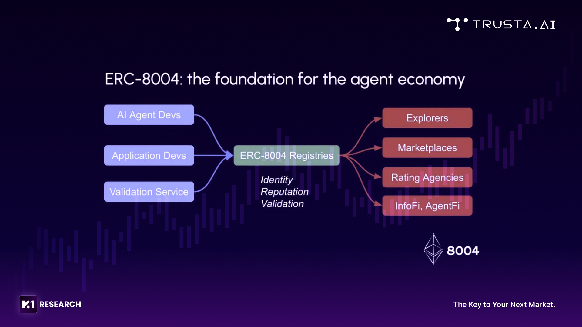 이러한 한계를 극복하고자, 이더리움 재단은 블록체인을 머신 이코노미의 신뢰 인프라로 활용하려는 시도를 시작했다. 2025년 8월, dAI 팀의 Davide Crapis가 주도하고 MetaMask 엔지니어 Marco De Rossi가 참여하여 초안이 작성된 ERC-8004 제안서(Trustless Agents)는 바로 이러한 필요에서 등장했다.