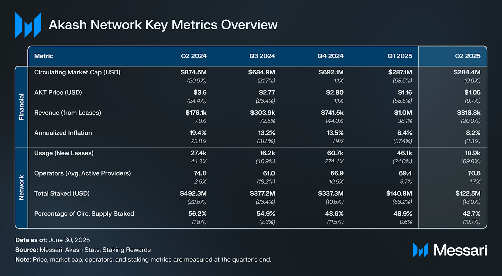 • 수수료는 본래 AKT로 지불되므로, 전체 배포가 줄어들었음에도 불구하고 고가치 임대의 성장이 토큰 기준 수익을 유지했다.