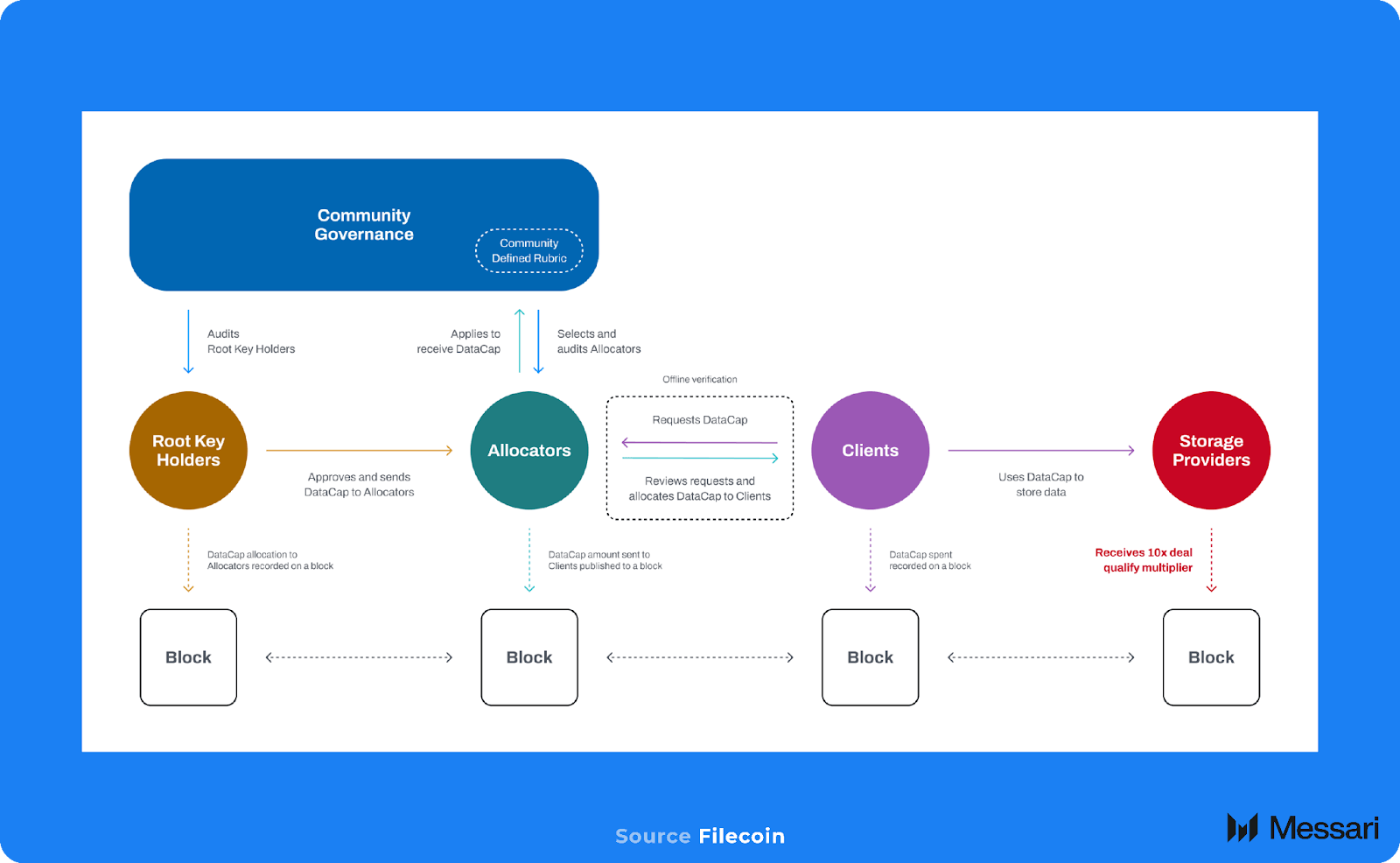 • 토큰 보유자: FIL 보유자는 스토리지 거래를 위한 담보를 공급하고 토큰 가중 투표 없이 커뮤니티 주도 프로토콜 업그레이드를 가능하게 하는 파일코인 개선 제안(FIP)을 통해 파일코인의 개방형 거버넌스에 기여한다.