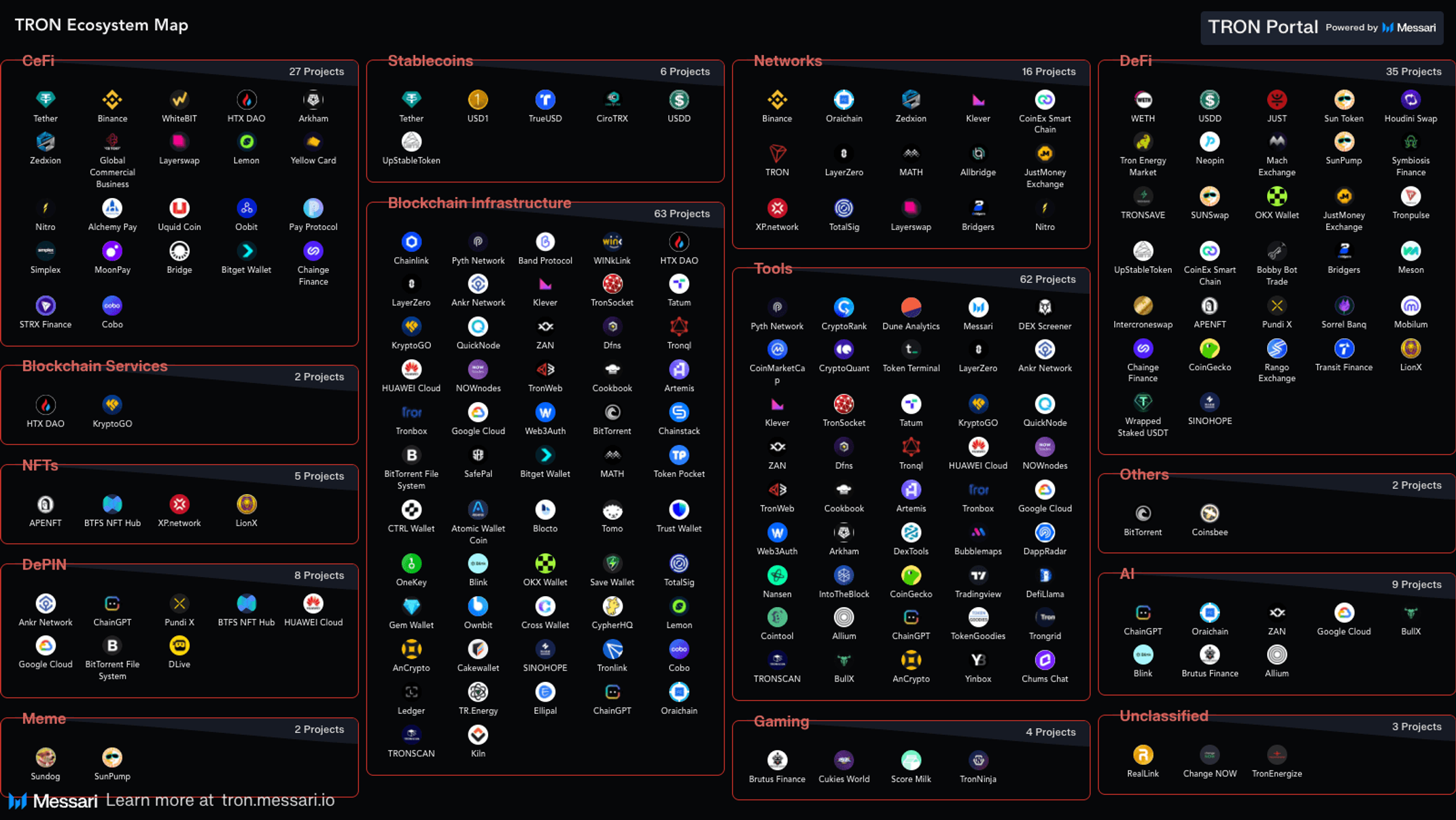 트론은 1,000만 달러 펀드를 갖춘 인큐베이터 프로그램인 트론 빌더스 리그(TRON Builders League) 같은 이니셔티브를 통해 스테이블코인을 넘어 생태계를 성장시키는 전략을 계속 구현하고 있으며, 이는 트론의 빌더를 지원하도록 설계되었다.