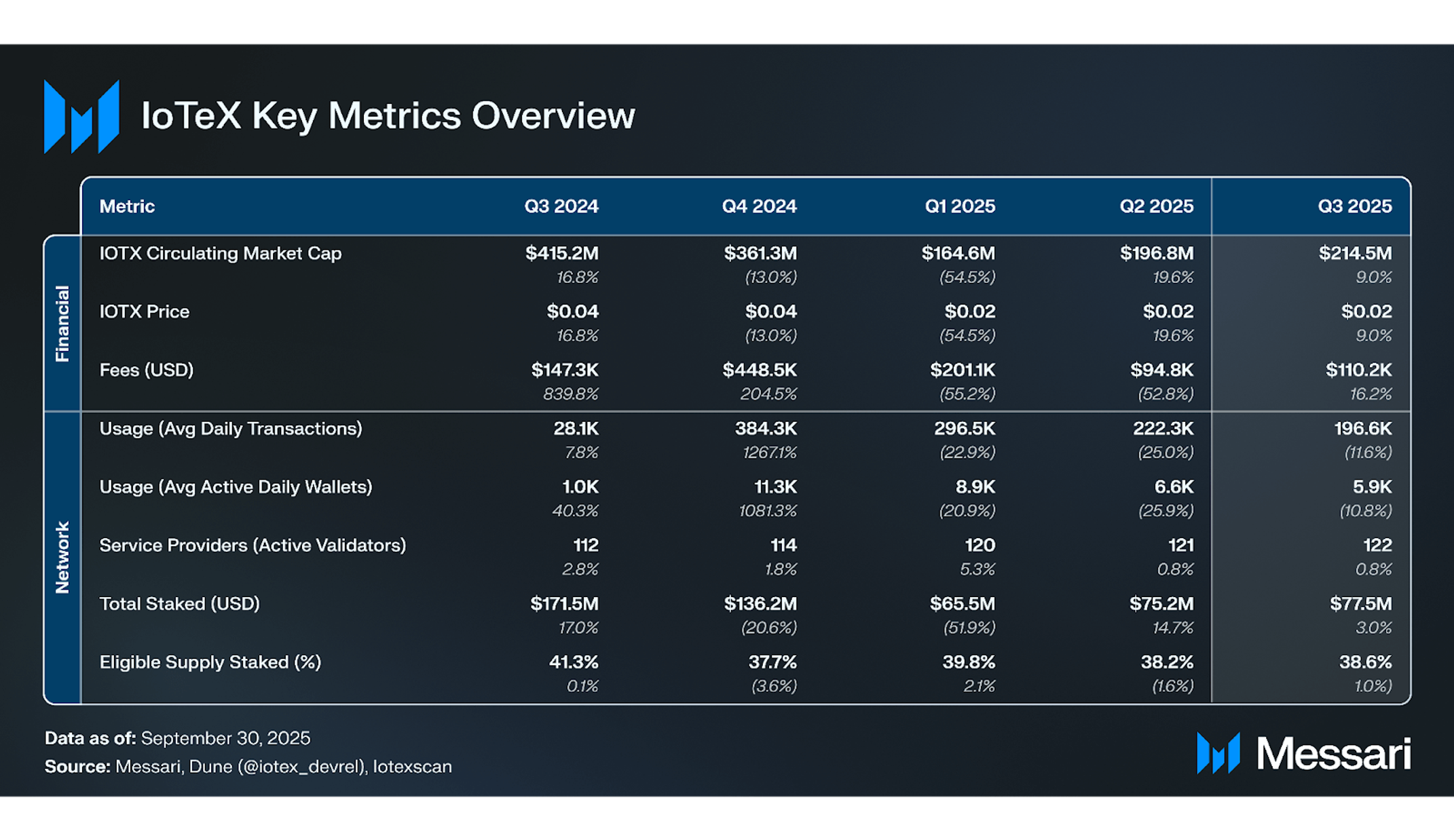 아이오텍스(IoTeX) 2025년 3분기 현황