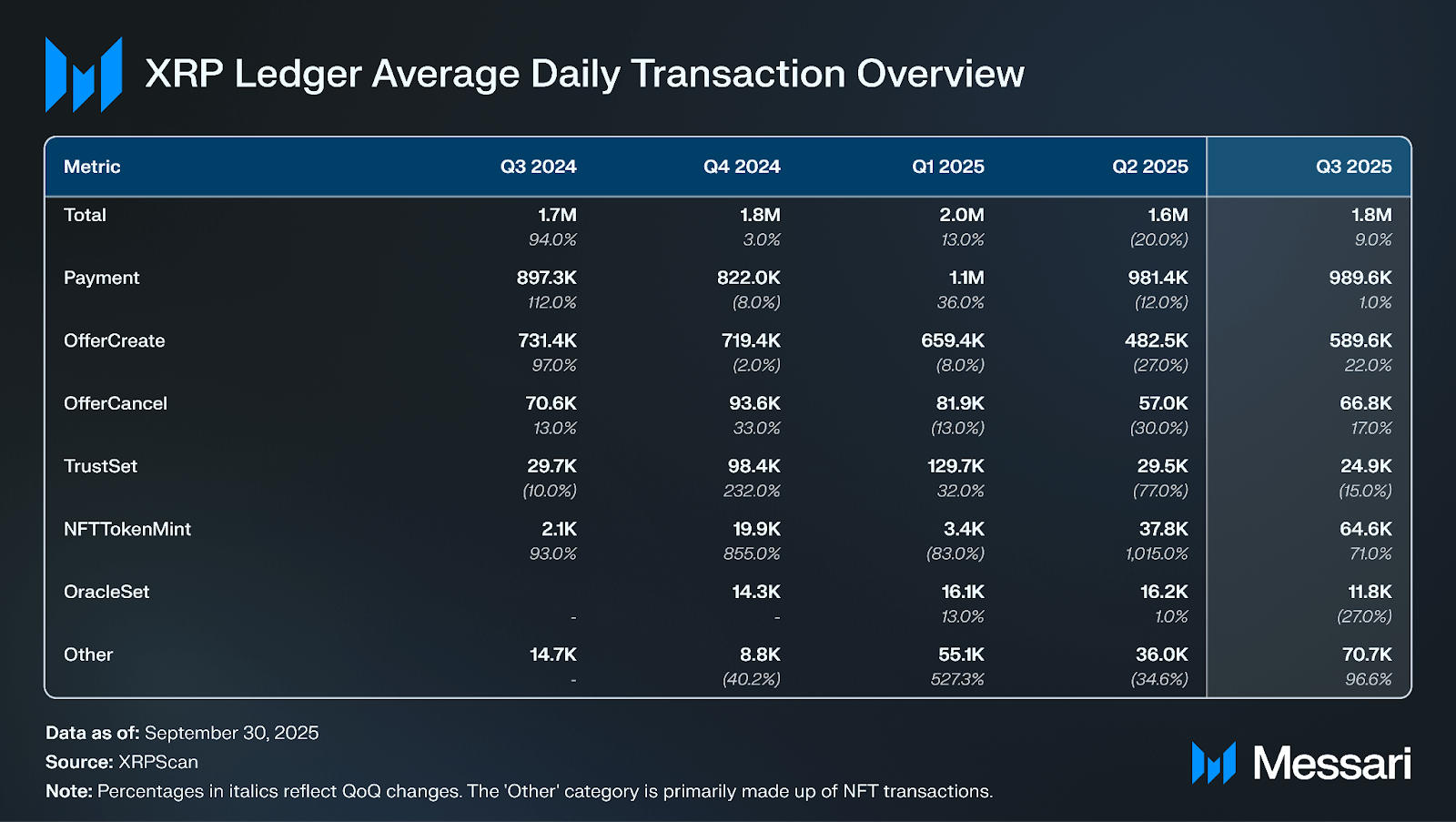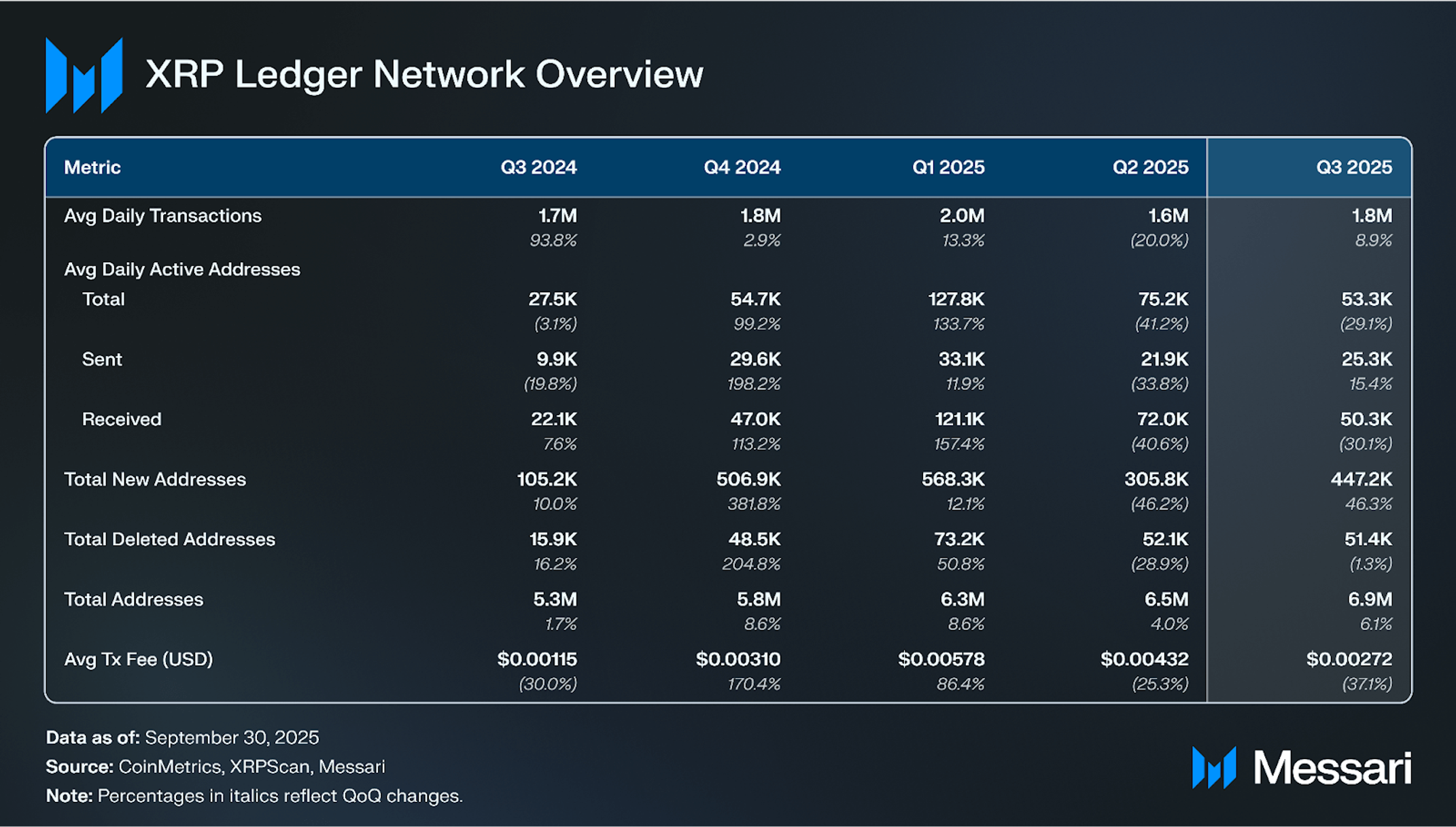 XRP 렛저(XRP Ledger) 2025년 3분기 현황
