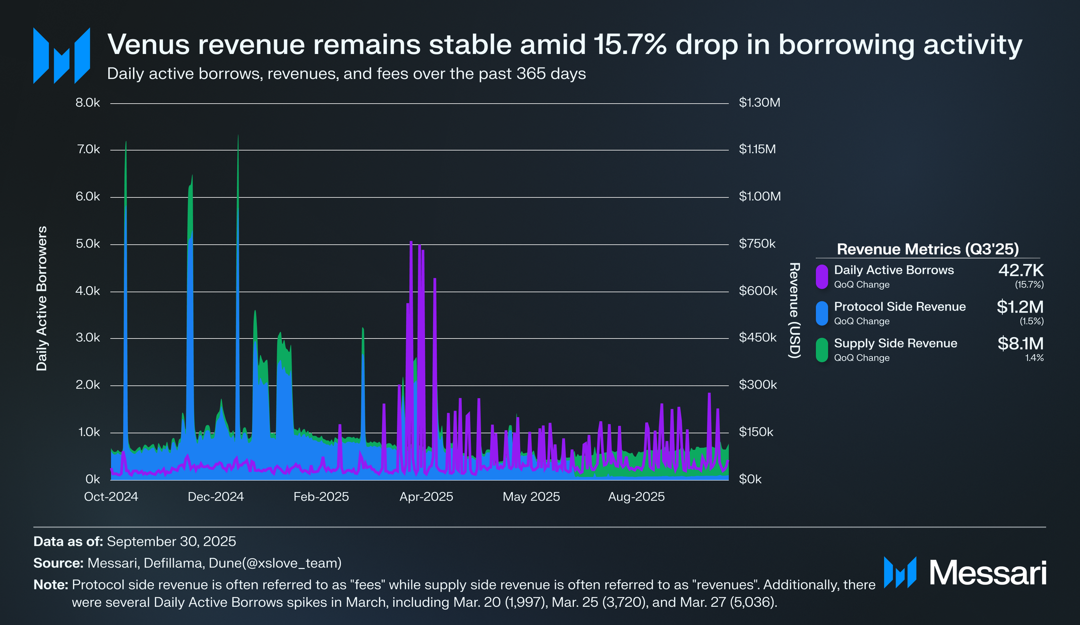 낮은 트랜잭션 활동에도 불구한 일관된 수익 성과는 금리 스프레드의 정상화와 차입자 및 예금자 수익률 사이의 개선된 균형을 나타낸다. 비너스 수익의 초기 변동성은 2025년 5월 종료된 BNB 런치풀(BNB Launchpools) 기간 동안 BNB 차입의 일시적 급증에 의해 주도되었다. 그 이후 차입 수요와 수익은 레버리지 선호도의 광범위한 회복과 주요 시장 전반의 더 안정적인 자본 활용에 의해 지원받으며 2025년 3분기 전반에 걸쳐 꾸준히 성장했다.