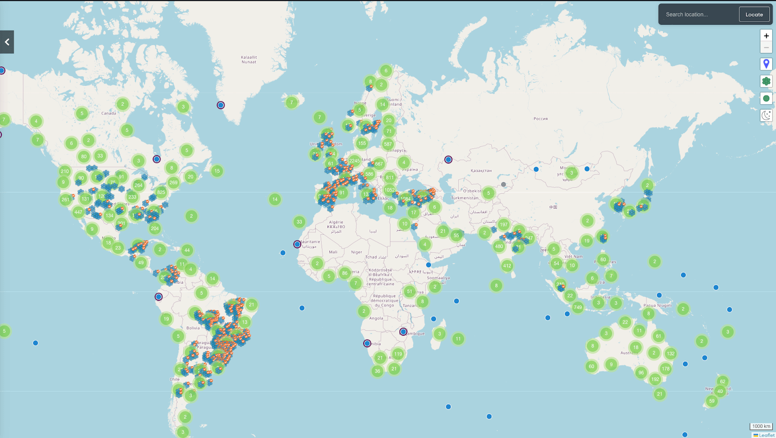 지오드넷의 인프라는 148개국 이상과 5,037개 도시 이상에 걸쳐 있다. 마이너의 가장 높은 집중도는 미국과 유럽에 있으며, 남미, 호주, 인도에서 상당한 존재감을 보인다. 네트워크는 또한 일본, 한국, 남아프리카에서 증가하는 존재감을 갖고 있다.
