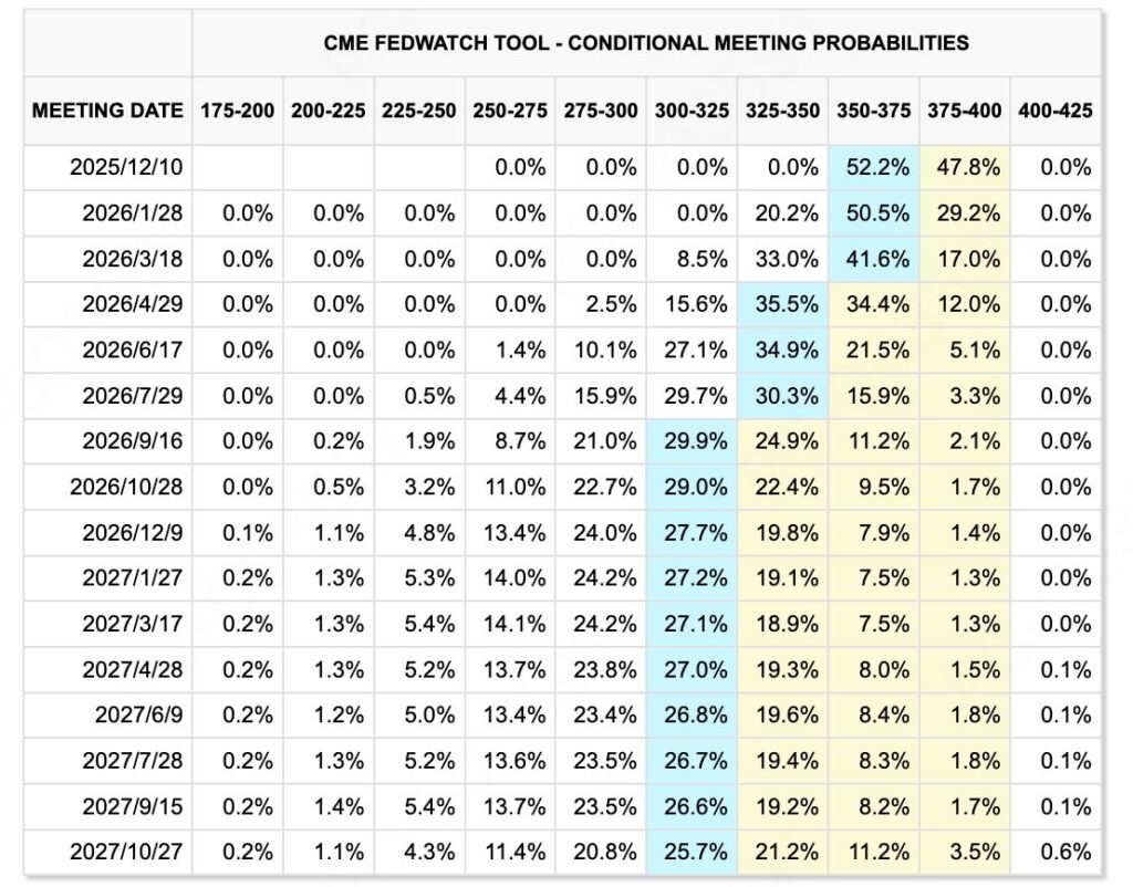 가장 큰 요인은 금리 전망의 변화다. 연준의 금리 인하 기대감은 약 90%에서 53%까지 빠르게 꺾였다. 금리와 유동성에 민감한 기관투자자들은 즉각 반응했다. 전망이 약해지면 자금은 국채·금 등 안전자산으로 옮겨간다. 따라서 이번 암호화폐 하락은 돌발적이라기보다 긴축 환경에서 충분히 예상 가능한 흐름이었다.