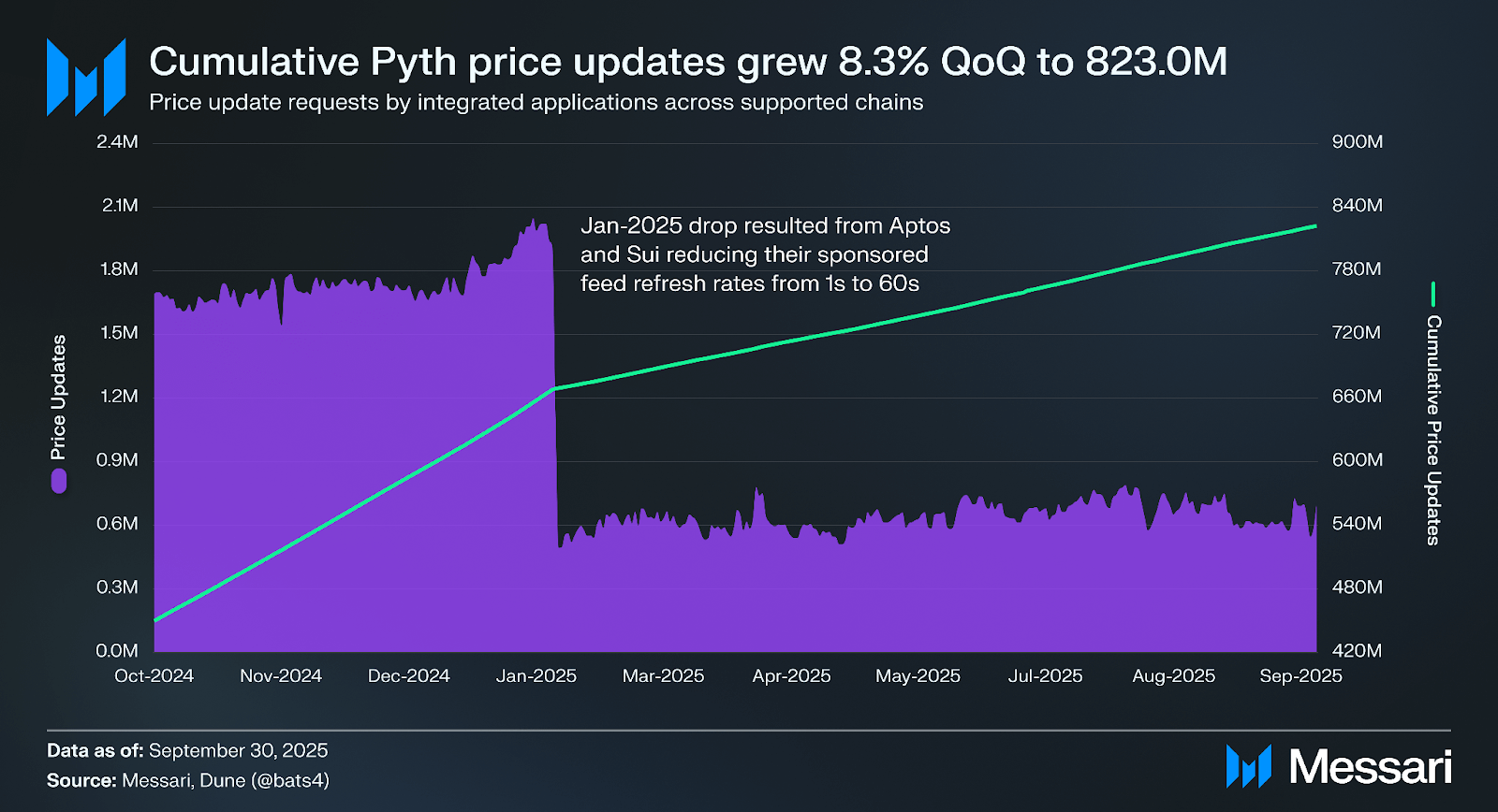 누적 가격 업데이트는 729억에 도달했으며, 이는 665억에서 전분기 대비 8.3% 증가한 것이다. 지속적인 증가는 애플리케이션 수준에서의 광범위한 채택과 지원되는 생태계 전반의 지속적인 활동을 반영한다.