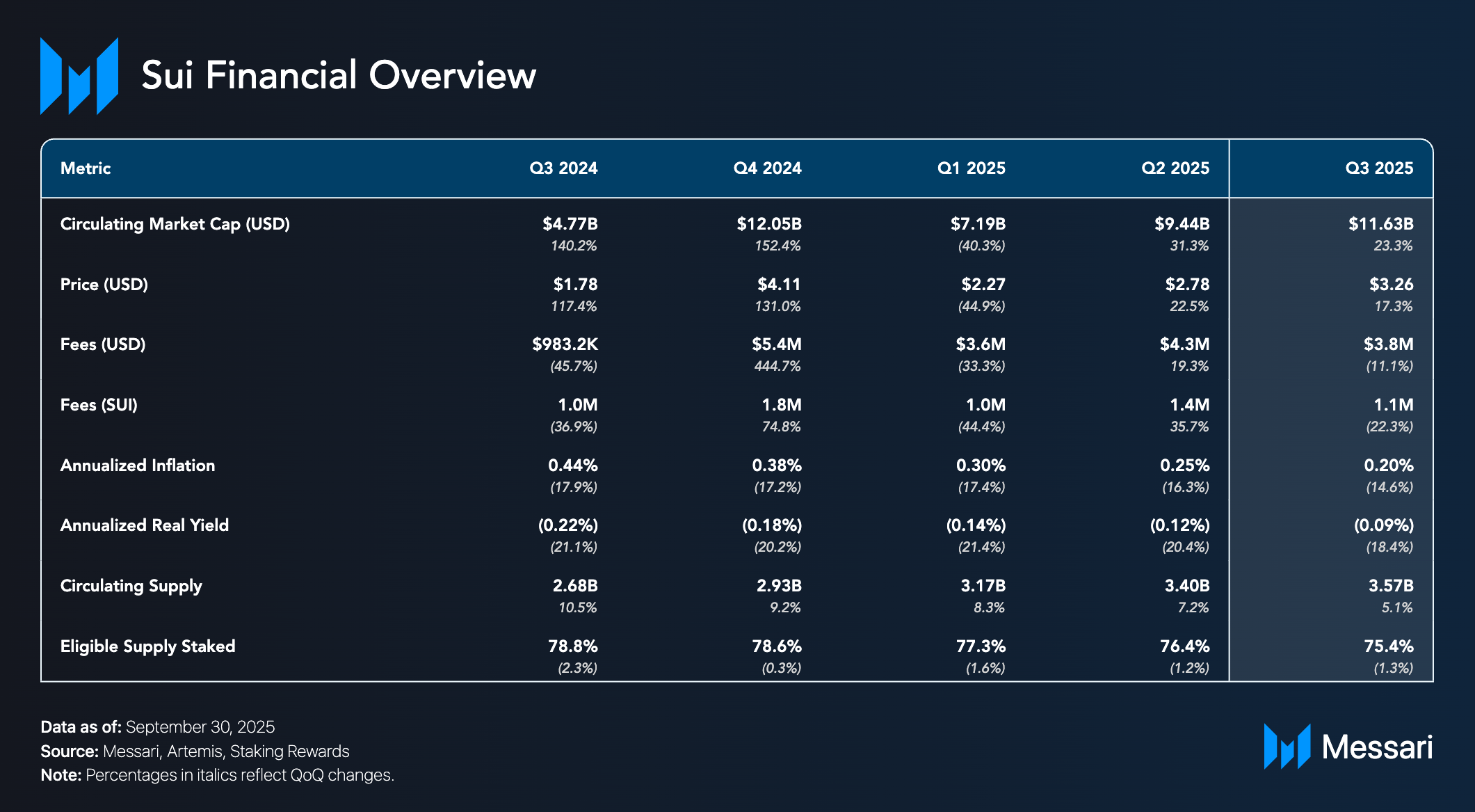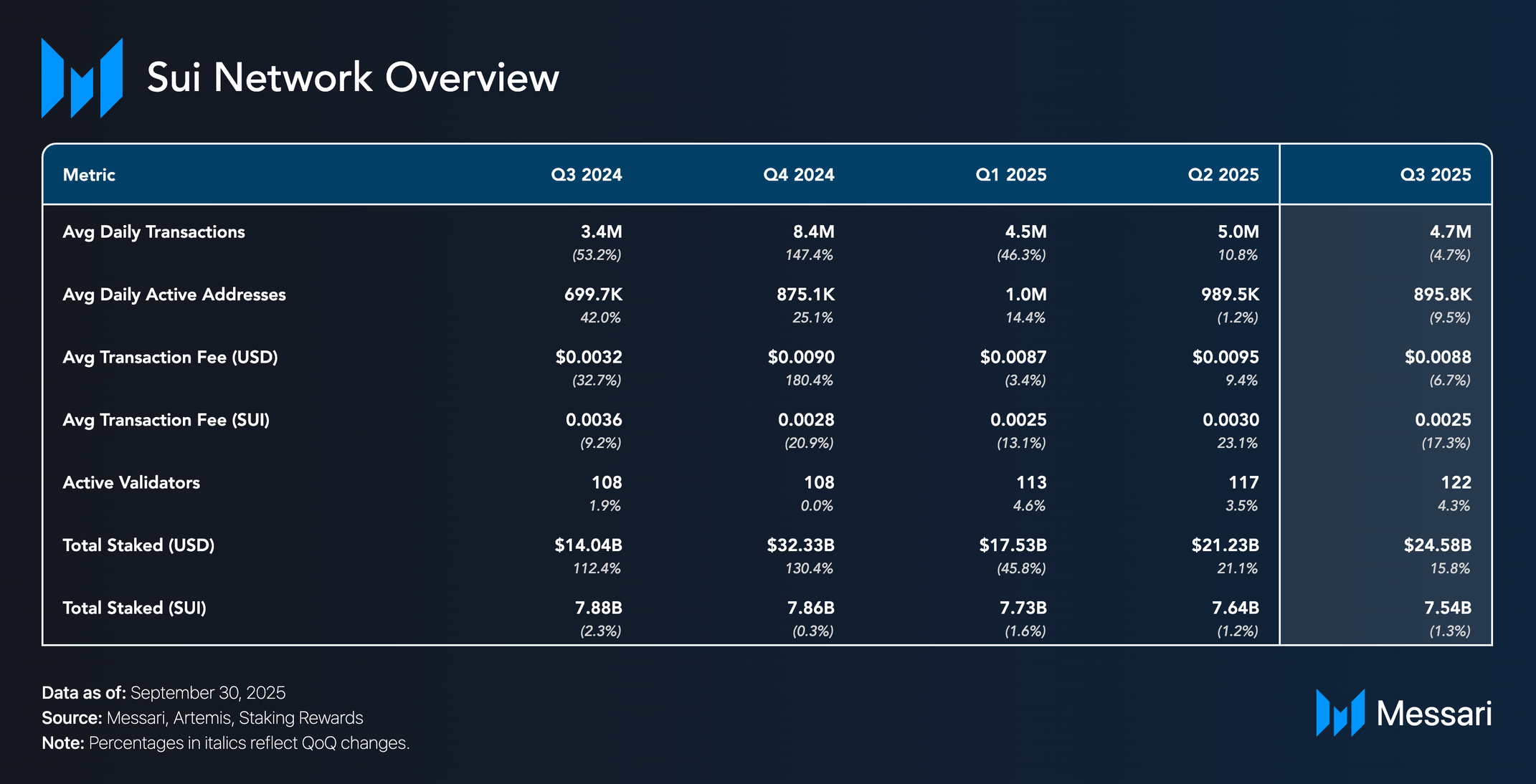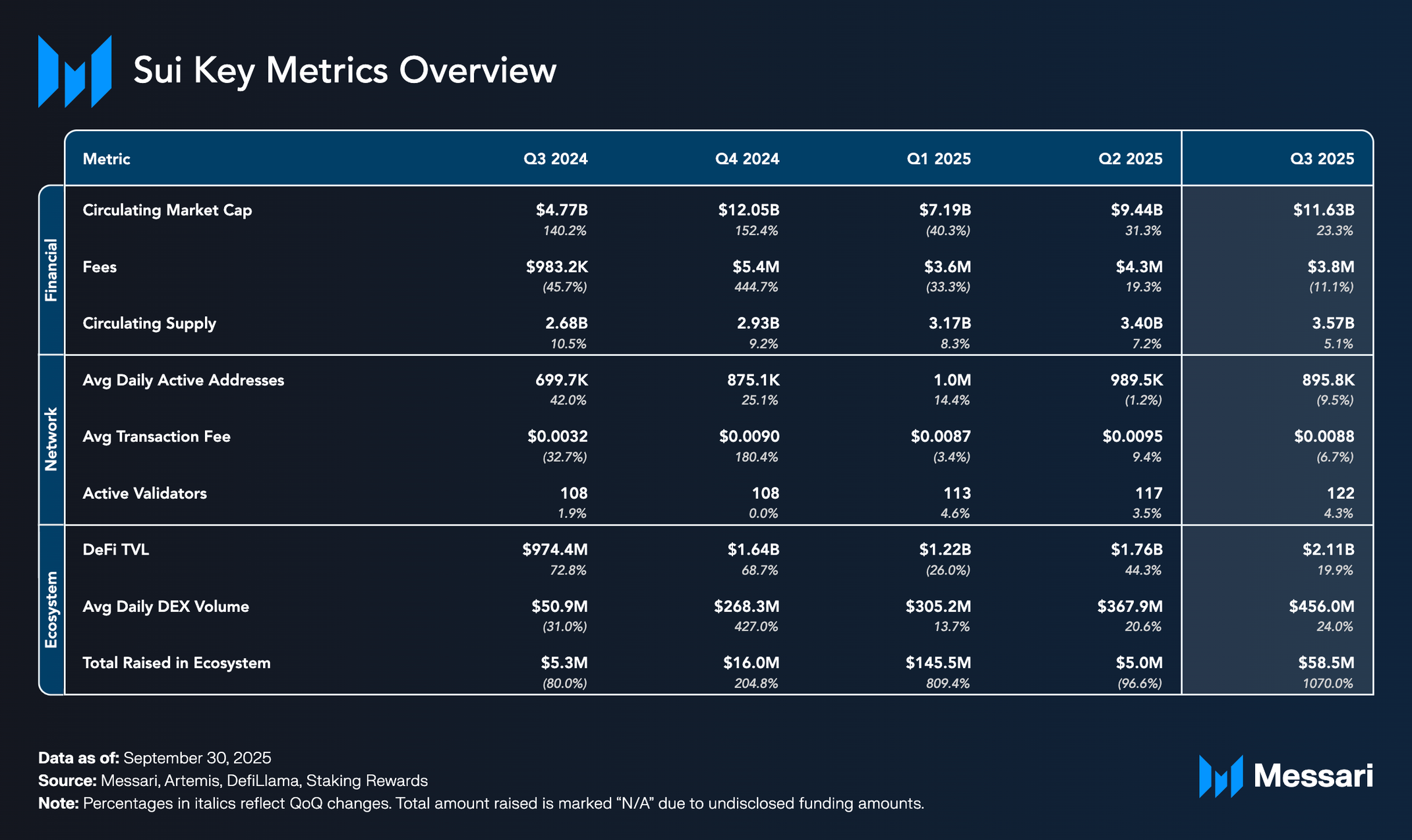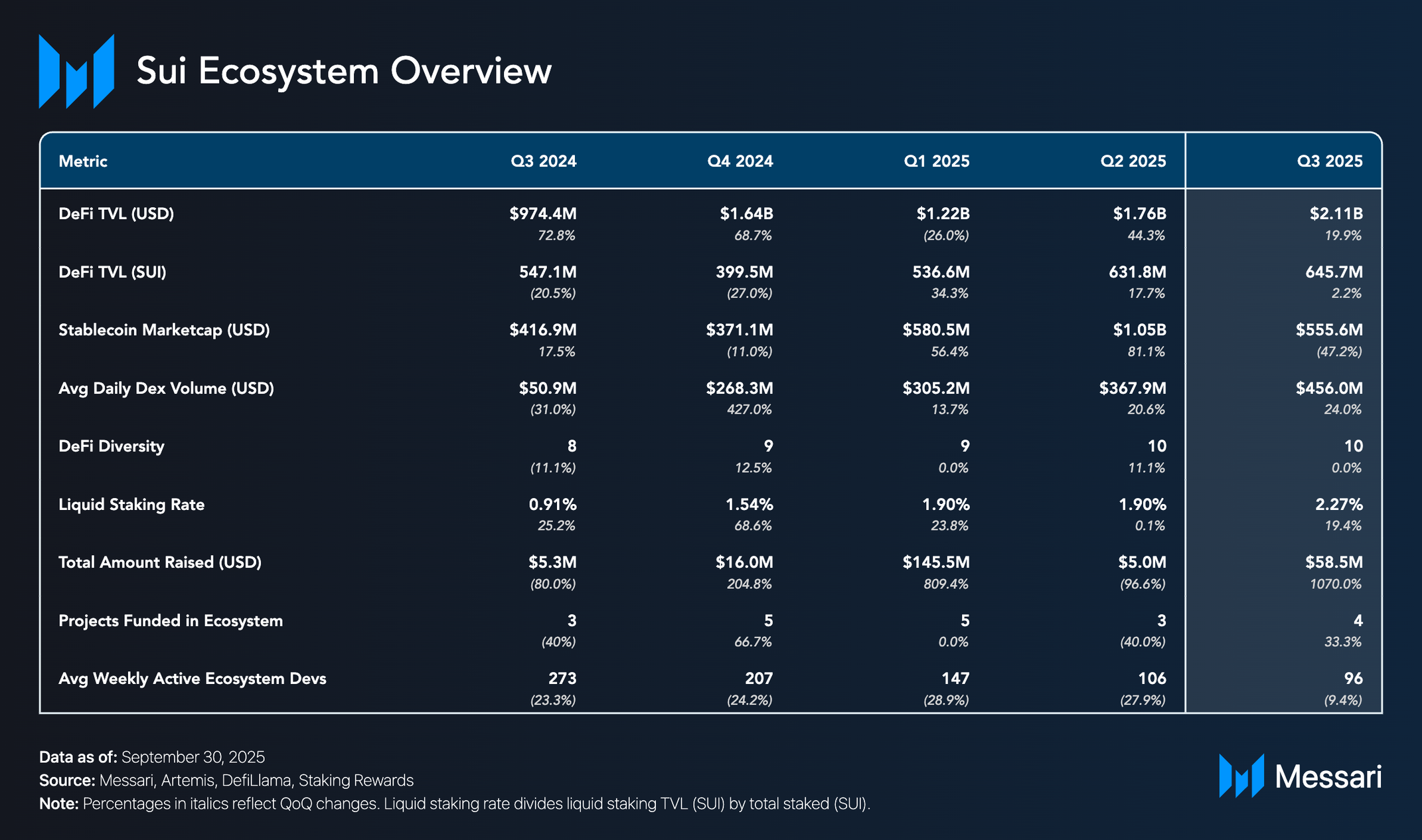 2025년 3분기에 수이는 게임, NFT, RWA와 같은 소비자 애플리케이션에서 상당한 진전을 보이며 디파이를 넘어 확장을 계속했다.