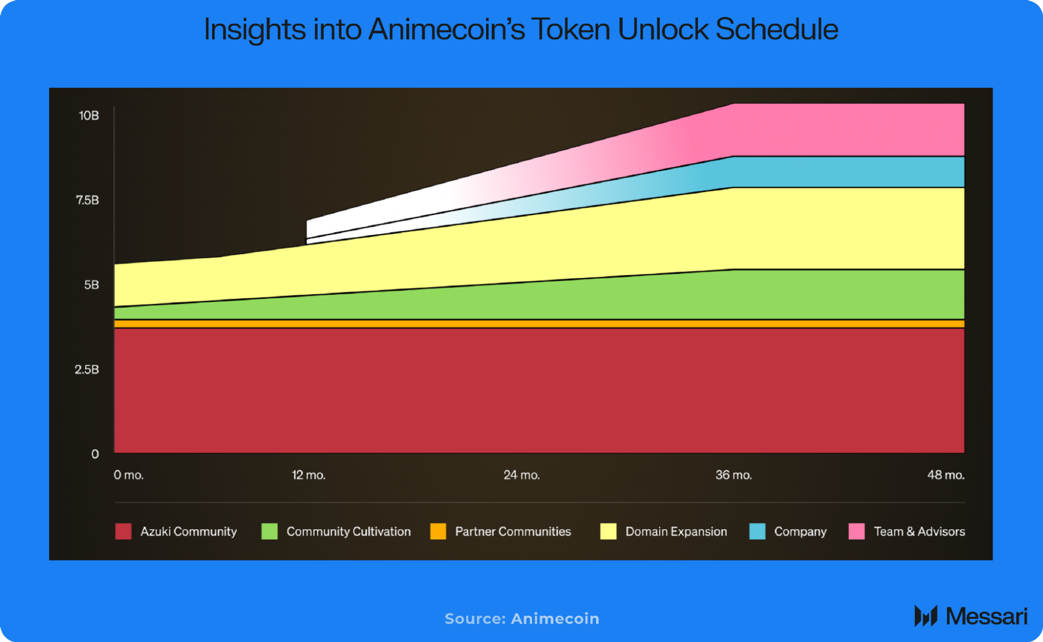 4년차 말까지 모든 100억 개의 ANIME가 언락되며, 커뮤니티, 재단, 기여자 배분 전반에 걸쳐 균형 잡힌 분배가 이루어진다.