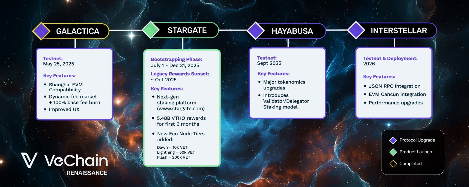 3분기의 진전에 이어, 르네상스 로드맵은 2025년 후반 하야부사 메인넷 출시로 계속되어 활성 스테이킹으로의 마이그레이션과 최종 DPoS 메커니즘을 완료할 것이다. 이후 로드맵의 최종 단계인 인터스텔라(Interstellar)가 이어지며, 전체 JSON-RPC 통합과 완전한 EVM 패리티를 도입하여 비체인토르를 더 광범위한 이더리움 생태계와 정렬시킨다.