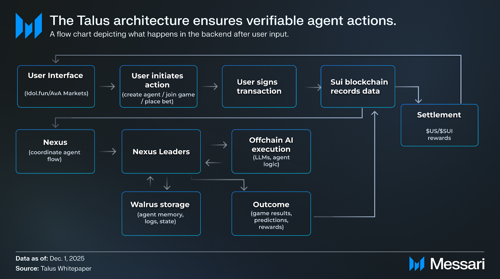 • 2024년 9월: 탈루스 네트워크가 수이(Sui)의 MoveVM에서 넥서스 데모를 출시했으며, 이는 자율 AI 에이전트를 위한 세계 최초의 완전 온체인 에이전트 프레임워크다.
