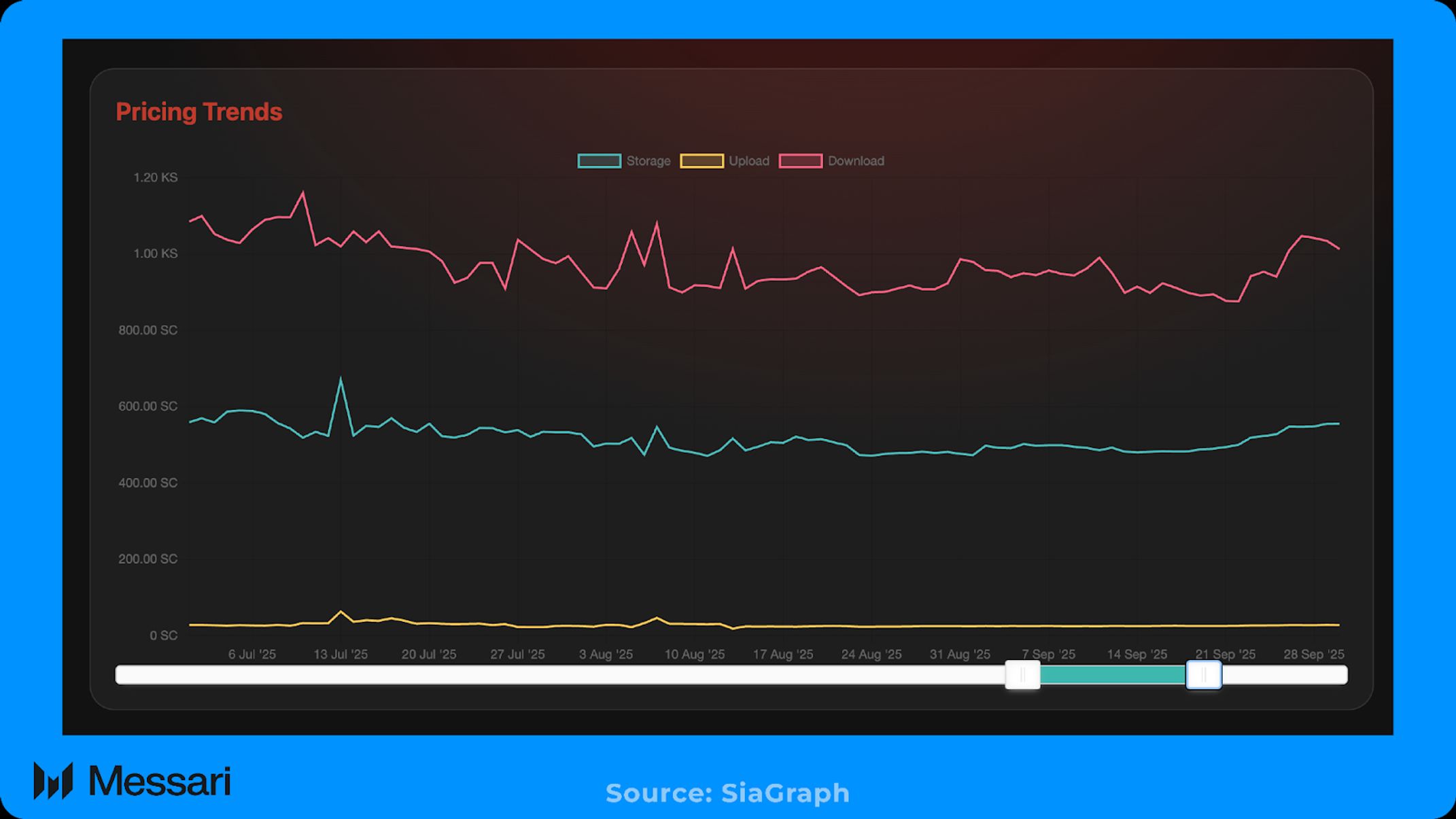 렌터에게 환경은 여전히 유리했다. USD 기준 스토리지 비용은 1년 만에 최저 수준에 도달했으며, 약화된 네트워크 활동 속에서도 경제성을 유지했다. 그러나 호스트에게 낮은 사용률과 감소한 SC 가격의 조합은 지속적인 수익 도전을 제기했으며, 이는 시장이 하드포크 이후 조건에 적응하면서 잠재적인 재가격 역학의 무대를 마련했다.