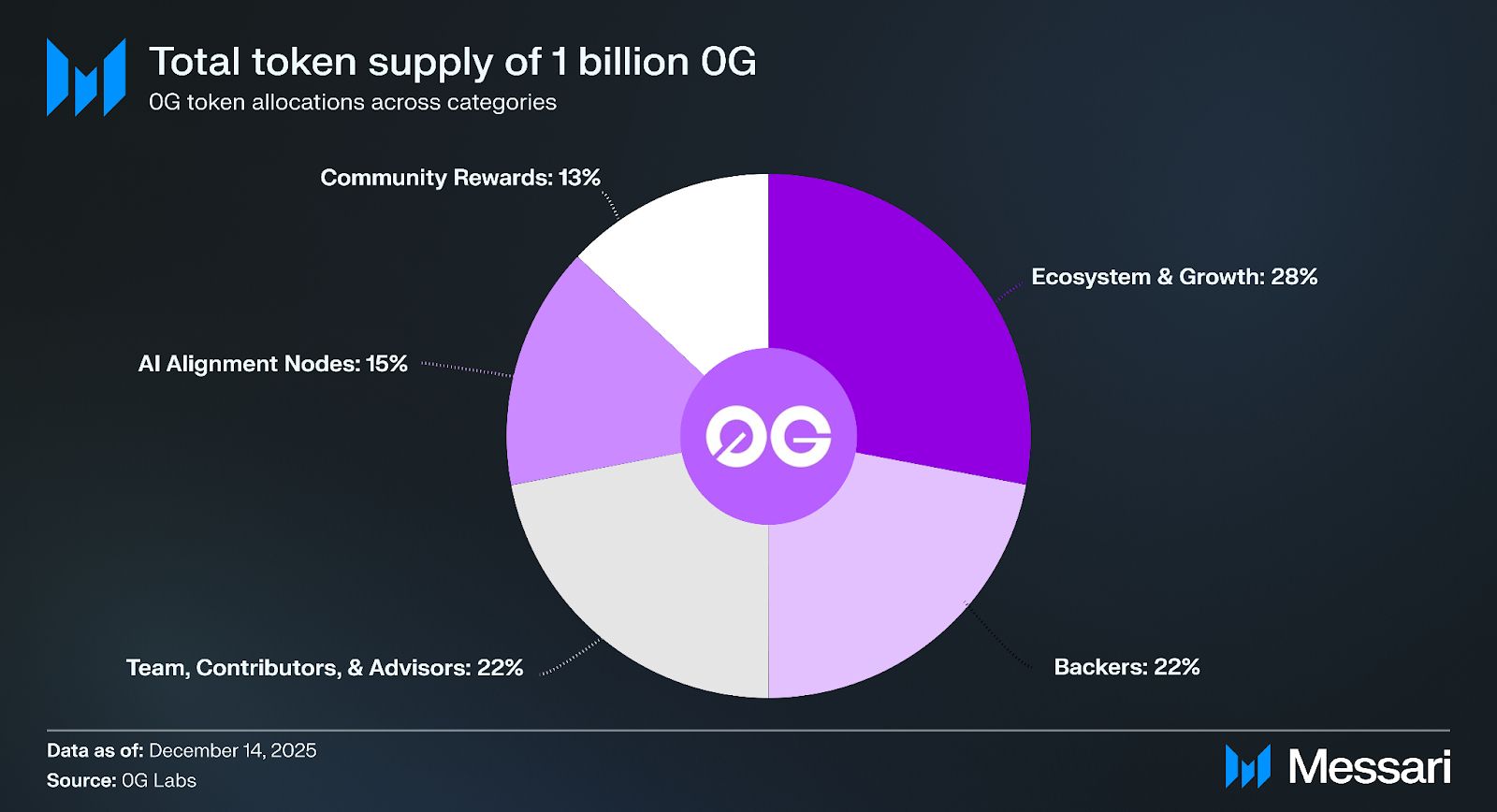커뮤니티 및 생태계 할당의 일부는 생태계 성장 펀드(Ecosystem Growth Fund)와 0G 길드(Guild on 0G) 프로그램 및 액셀러레이터에 자금을 조달한다. 인센티브는 일회성 캠페인보다 반복되는 작업, 데이터셋 게시 및 검색, 제공자 온보딩을 우선시한다.