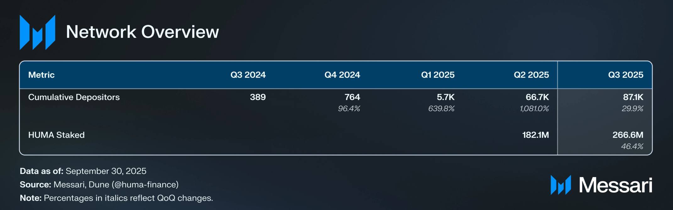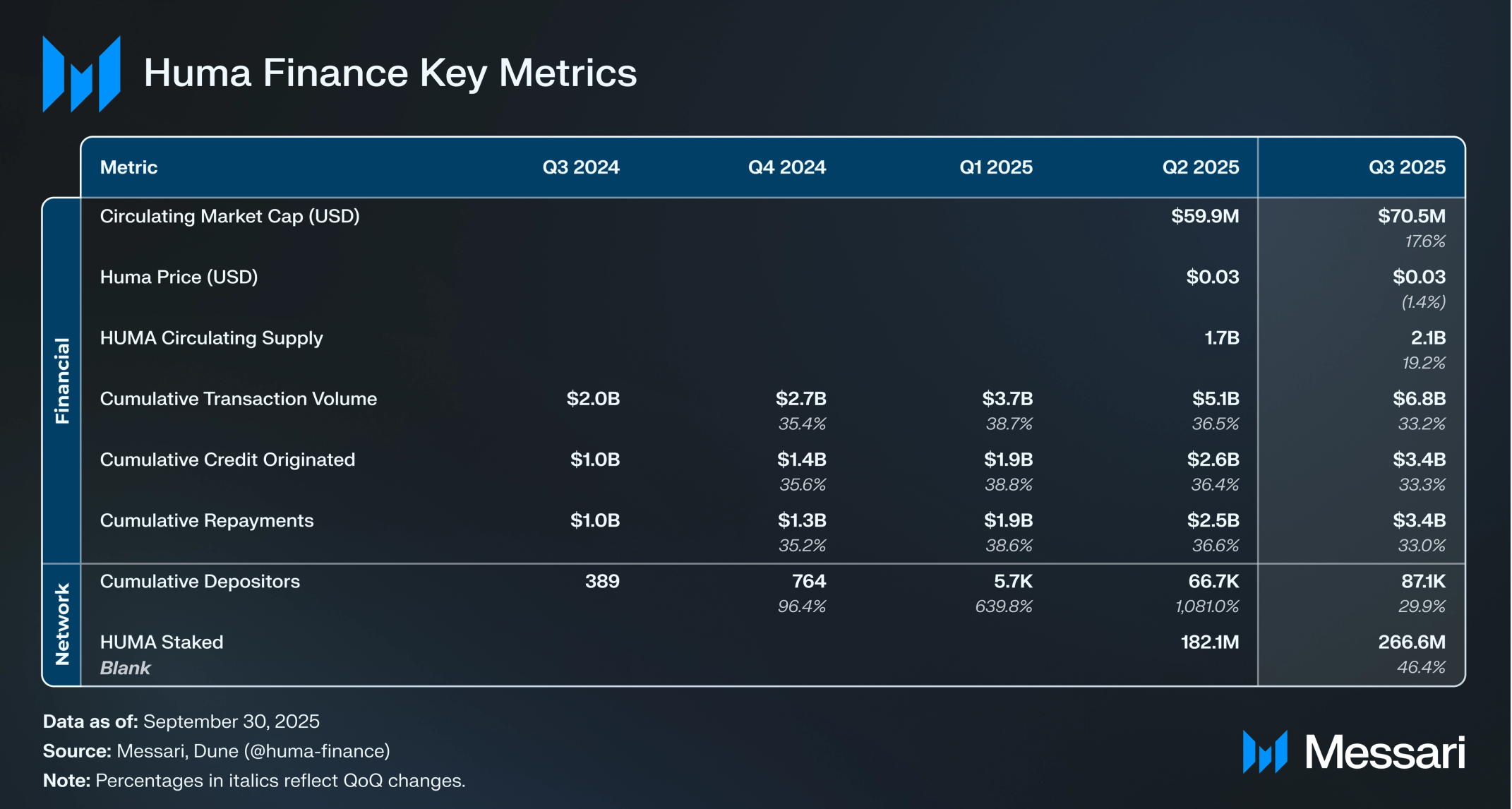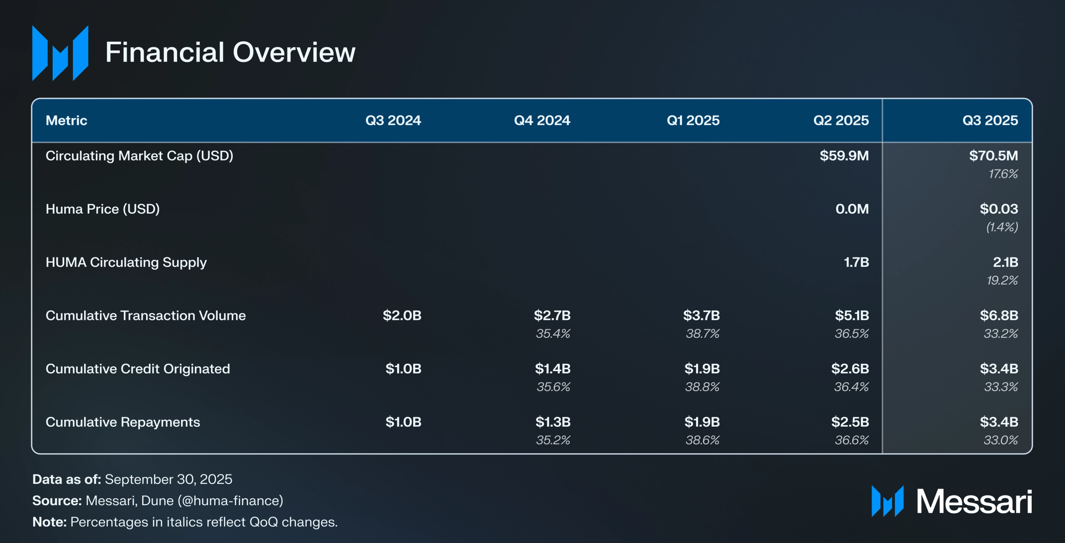 휴마 파이낸스(Huma Finance) 2025년 3분기 현황
