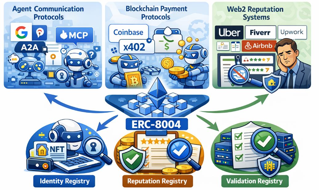 • 결제 프로토콜(x402 등)과의 관계: x402가 자금의 이동(Payment Rail)을 담당한다면, ERC-8004는 자금 수취 대상의 적격성을 판단하는 기준을 제공한다. 즉 ERC-8004로 검증된 에이전트에게 x402를 통해 대금을 지급하는 구조다.